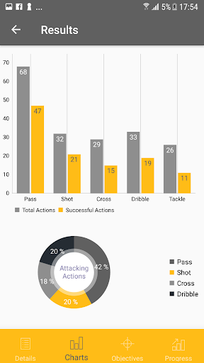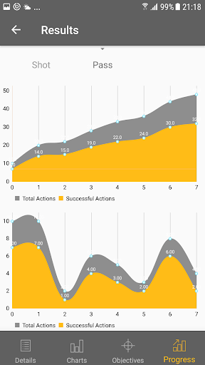 Clock is ticking, setup goals and targets in order to improve your skills and reach higher levels and record all the action during a football game. Later on, you can view the stats and activities in charts and graphs with full details. You can analyse the progress report, review overall stats, view your targets and objectives and finally checkout your level.