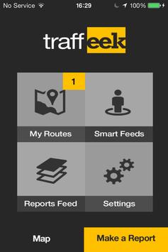 With the Traffeek app you can share and be notified of traffic alerts around you and on your journey. You can set Traffeek to inform your of traffic alerts around your planned journey and view the current traffic alerts along your route.