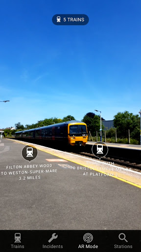 Picture real-time train information in an interactive real-world environment. The train and station views in AR mode show nearby trains and railway stations in an immersive augmented reality experience. The app will locate trains that are departing from your nearest station and display them. Tapping on a train reveals more information about its calling points and last reported location. View stations nearby in augmented reality.
