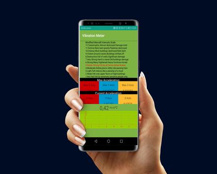 Vibration Meter, also known as seismograph, seismometer measures vibrations using your Android’s sensors and shows reference to earthquake vibrations as classified by Mercalli intensity scale.