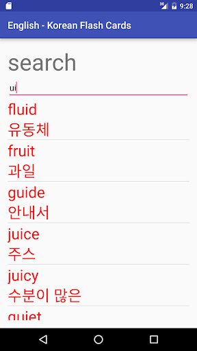 A tiny app that helps you along with learning the basics of Korean. Containing 1, 2, 3, 4 and 5 letter English words translated to Korean. Also available are search facilities (free), a shuffle mode (free) to randomise cards as well as a test mode (in-app paid for).