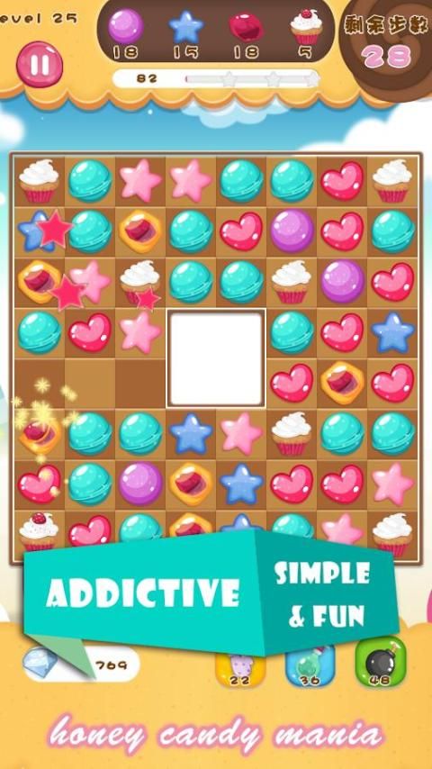Easy and fun match 3 game, Join honey and start the adventure in the candy world.