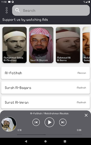 After downloading the application, you can listen to the surahs of the Holy Quran with the voice of Sheikh Abdullrahman Alsudais for free anytime and anywhere with ease.
