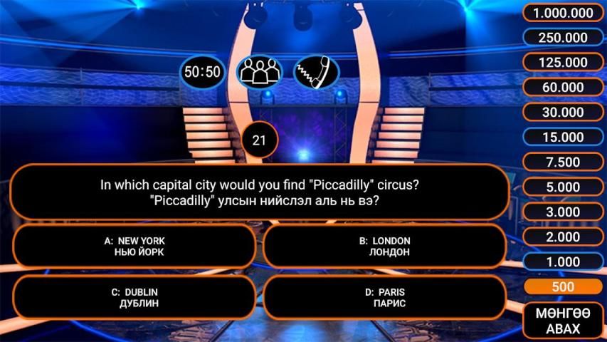 Хамгийн алдартай асуулт хариултын шоуны монгол, андройд хувилбарыг та бүхэнд хүргэж байна.