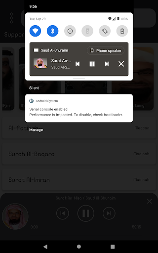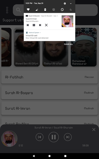 - The ability to present the surah by clicking on the progress bar.