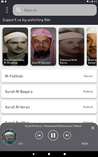 Now you can use the application with ease and listen to the surahs of the Holy Qur’an in the voice of Sheikh Muhammad Mahmoud al-Tablawi and live a wonderful state of faith in which you delve into the meanings of the Holy Qur’an, enjoying the voice of Sheikh Muhammad Mahmoud al-Tablawi that transports you to another world with his distinctive voice.