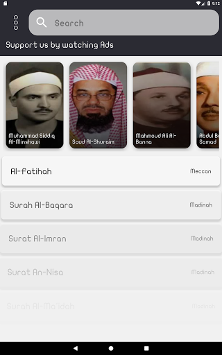 The interface of the Holy Qur’an program with the voice of Muhammad Mahmoud al-Tablawi is very simple, which enables you to use the program with ease. You will not suffer any difficulty starting from downloading the program from the store until the download of the Holy Quran program in the voice of Muhammad Mahmoud al-Tablawi, and using it to listen to the surahs of the Holy Quran.