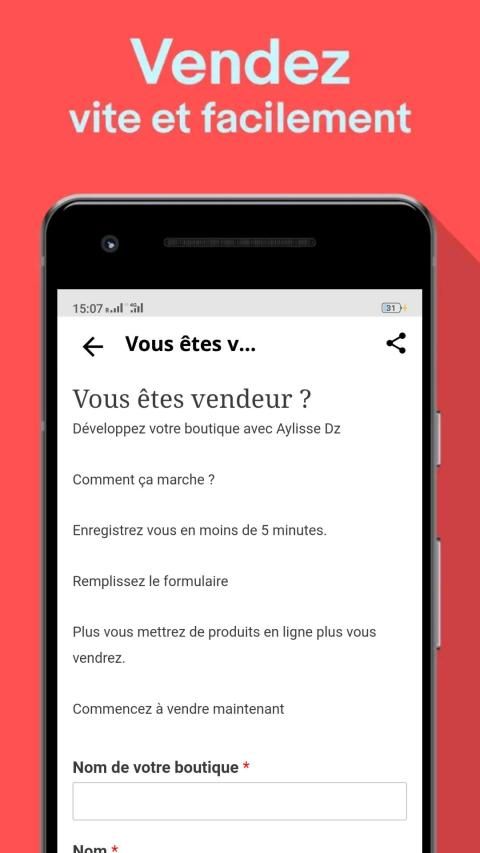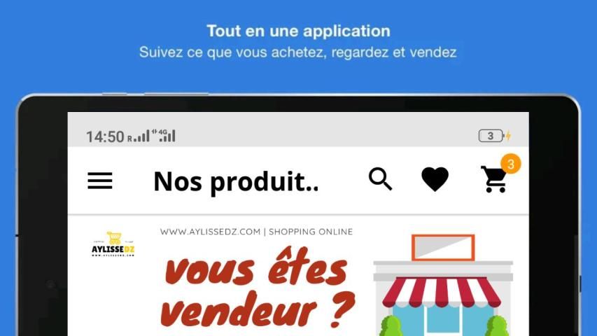 Des millions d'articles sont disponibles pour vous et votre famille. Avec l'application Aylisse Dz , vous trouverez tout ce que vous voulez à petits prix. Pas encore inscrit? Téléchargez l'application Aylisse Dz dès maintenant!