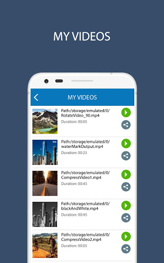 Share: This feature helps you to share video to Youtube, Gmail, Bluetooth, Whatsapp etc.