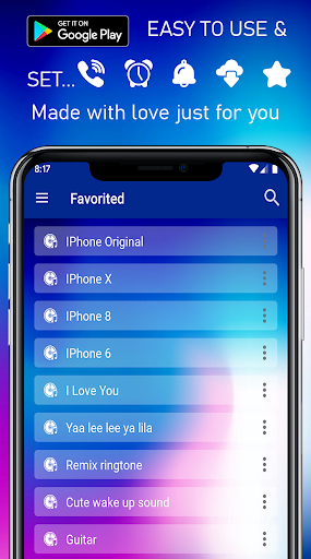 The ringtones are selected carefully with high, unique and diverse: funny ringtones, baby ringtones, animal ringtones, message tones, pop, rock, hip-hop, dance, rap, country, ringtones remix, Christian & Gospel, Bollywood, alarm.