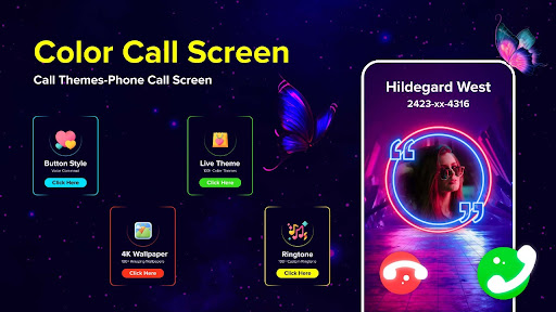 Color Caller Screen Themes, Color Phone Flash is the best free call screen maker Color phone for incoming call screen with call phone flash themes and LED Flash notification and Super Flashlight.