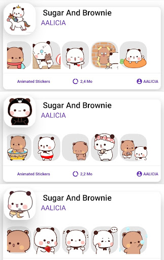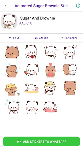 Adding this amazing sugar and brownie sticker for whatsapp will give you access to hundreds of animated milk mocha stickers starting with WAStickerApps animated teddy bear, michiandboo cartoon gif for whatsapp and animated WAStickerApps peach milk mocha, plus whatsapp sugar brownie stickers and ketuk WAStickerApps animated sticker, teddy bears.