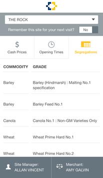 sites across Victoria and NSW. It also provides contact details for our grain marketing offices around the country. The app offers users quick and easy access to all relevant information to help make storage & handling and marketing decisions easy. This app also offers a click through to our mobile website where for growers, you can sell warehoused grain for cash.