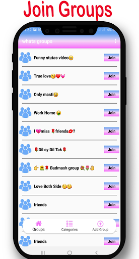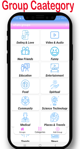 Join The Latest Groups In Different Categories Like Entertainment, Funny, Education, Fitness, Games, Friendship, Love & Romance, Sports, News, Social, Photography, Technology, And More. All The Category Keeps Lots Of Active Groups Invite Links. You Can Use The App Completely Free And Join The Groups Easily.