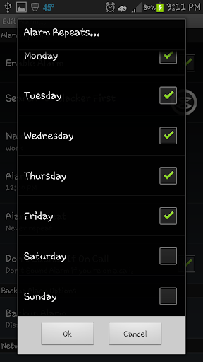 • Repeating alarm Monday, Tuesday, Wed, ect.