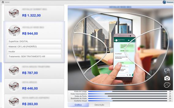 ऑप्टिक्स में डिग्री लेंस की प्रस्तुति के लिए आवेदन।इस एप्लिकेशन के साथ आप अपने फायदे, विनिर्माण, गुणवत्ता और मूल्य के विवरण के साथ विभिन्न प्रकार के लेंस पेश कर सकते हैं।आप एक आभासी वास्तविकता सिमुलेशन बना सकते हैं या प्रत्येक मॉडल के दृश्य के क्षेत्र को दिखाने के लिए नहीं कर सकते हैं।आईरिस और फ्रेम के आधारों के बीच दूरी को मापने के लिए अभी भी एक विशेष क्षेत्र है।