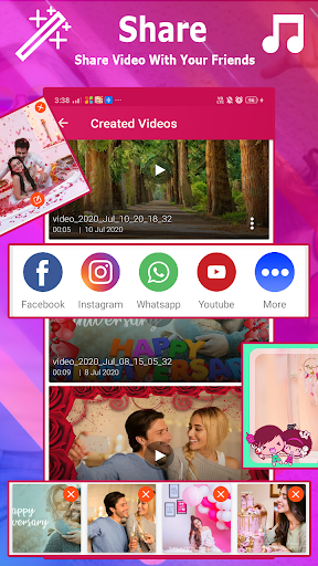 You can share the created video in any social app