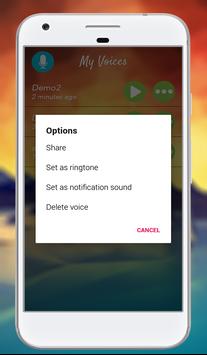 You can set your recorded and modified voice as ringtone, message tone and also alarm tone.