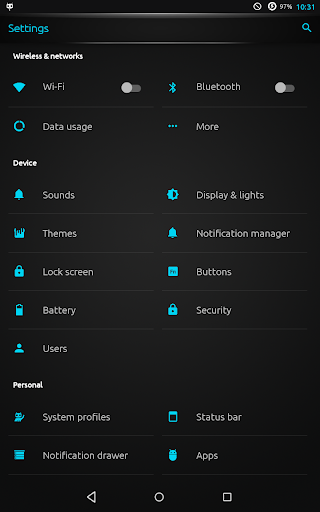 Be on the dark side of Android with this beautiful Blue Marshmallow material dark theme with Themed Icons and UI,