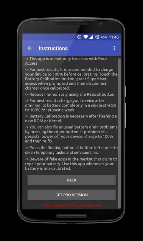 Follow the instructions in the app to successfully calibrate your battery and get rid of battery issues.