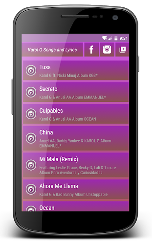 ✓ Optimized for all android devices, so you can enjoy Karol G lyrics on your Android smart phone or even your tablet.