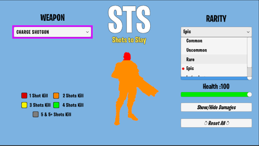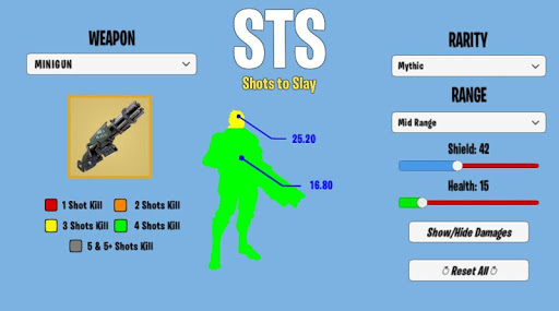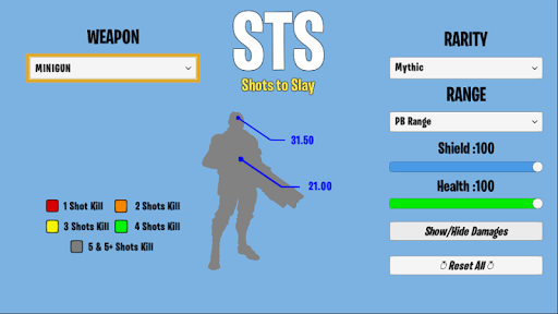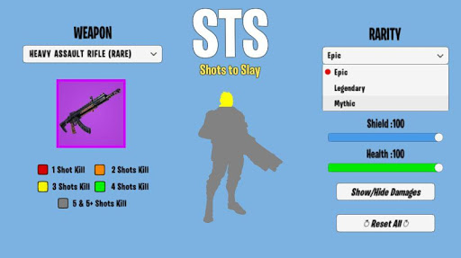This application gives you really simple solution. You just select the weapon, health and shield it is done!