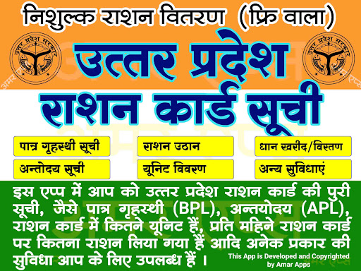 UP Ration Card List यूपी राशन from Amar Apps 2 is a FREE Ration Card list checking app. It’s used by many people in all over India and also from beside India. It’s simple, reliable, and too easy, so you can easily check your name and unit wise details of your name or your family, friends name with this app. UP Ration Card List यूपी राशन works across Android Mobiles even on slow connections, with no subscription fees*.