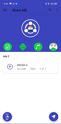 Share ME has simple, clean, and user-friendly transfer files interface. All files are sorted into categories(e.g., Music, Apps, Images) which makes them easy to find and share.