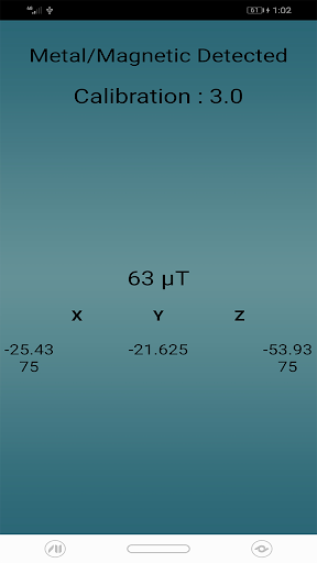 Metal detector and stud finder app can easily measures magnetic field value using the built-in magnetic sensor that is built into your device. The magnetic field level (EMF) in nature is about 49μT (microtesla) or 490mG (mille gauss); 1μT = 10mG.