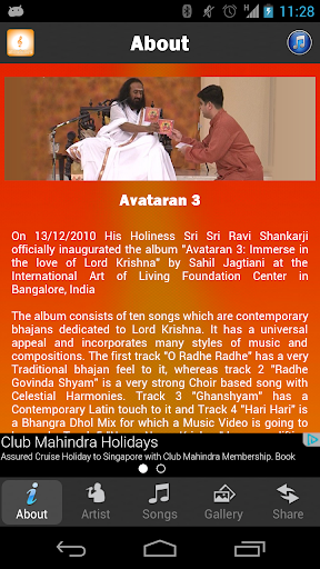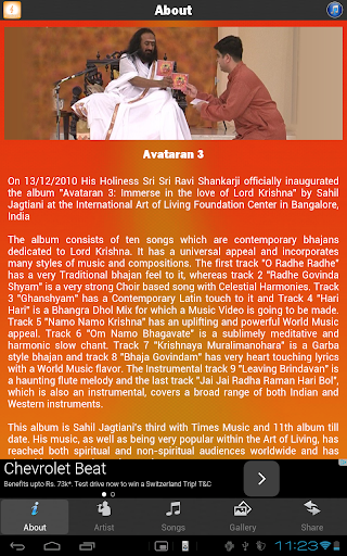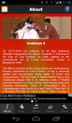 On 13/12/2010 His Holiness Sri Sri Ravi Shankarji officially inaugurated the album “Avataran 3: Immerse in the love of Lord Krishna” by Sahil Jagtiani at the International Art of Living Foundation Center in Bangalore, India.
