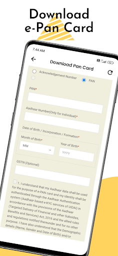 You must have an Acknowledgement Number to download e-Pan Card, then you can download e-Pan Card very easily. Now tell you how you can download e-Pan Card from this app. The e-Pan Card download link is given in this app on which you will be able to click on the direct downloading page, you will have to give an Acknowledgment number after that, after entering the Captcha Code, click on submit button Once again a page will open, there will be one time password (OTP) on your registered mobile number, after entering that OTP, you will be able to download PAN card.
