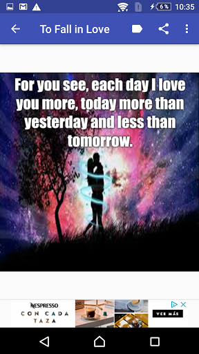 With this app you can conquer that person you look at with sweetness, but you never dare to tell them your feelings, it is a perfect way to start falling in love. A picture is worth a thousand words and with this application it will be much easier. An I love you on time, a I miss you, a gesture is important to always keep the flame of love and happiness alive.
