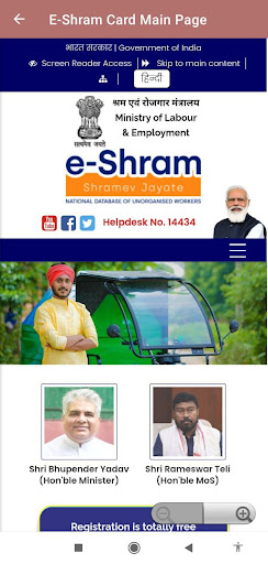 In this App you will find the service which is available in the following official public domains. https://eshram.gov.in/ Because the official website is loaded in this application. But this application is not official.