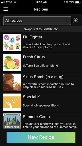 Manage your personal recipes for diffuser blends, DIY beauty products, and more. Organize them into categories of your own choosing.