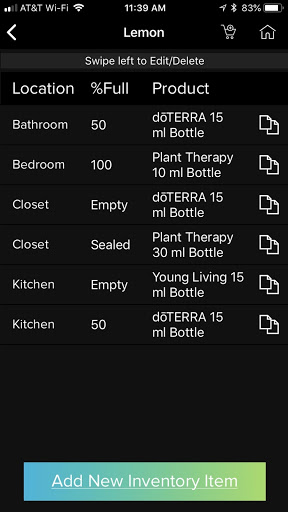 Keep track of oils you want to purchase or reorder in our convenient shopping list feature. Plus, search your inventory for bottles that are empty or nearly empty!