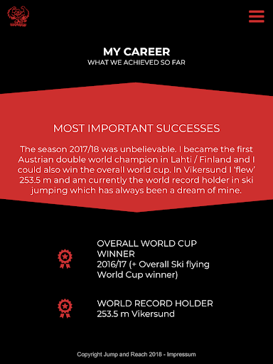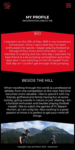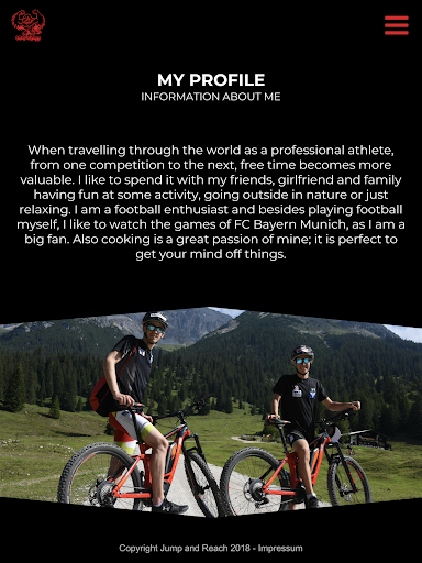 On one page you can discover the athlete in causal look and learn more about the sponsors and outfitters. On the other side you’ll see the athlete in action.