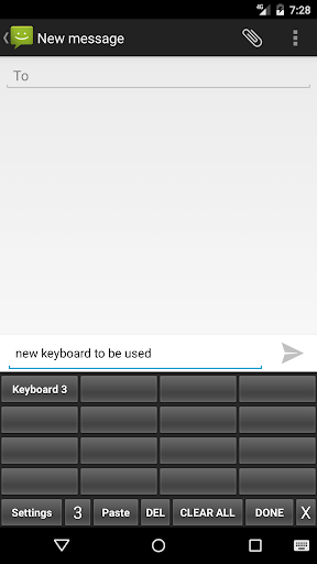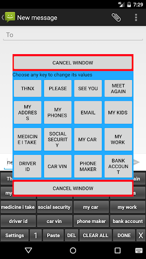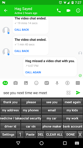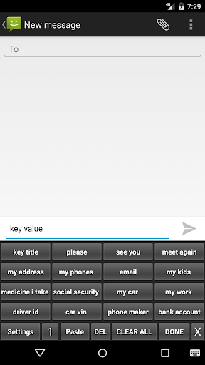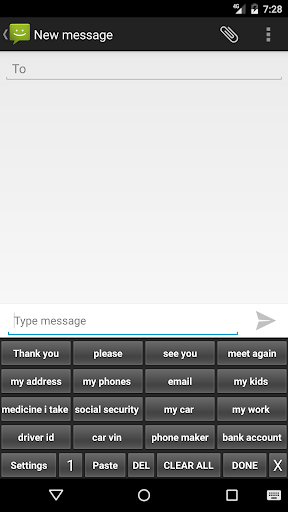 Have you ever dreamed of having your own keyboards phrases saved and ready to be used? Now you can with this application, it will give you 5 different keyboards that you can customize to your own liking; you can change every key label and value and will be saved forever. Spend some time to write your most used phrases and have them ready to be used with only one click in any place , you can use in Facebook, Skype , Messenger or virtually in any app that requires keyboard.