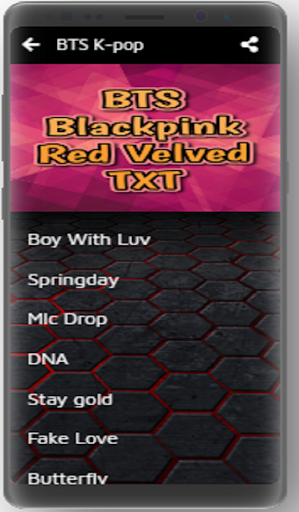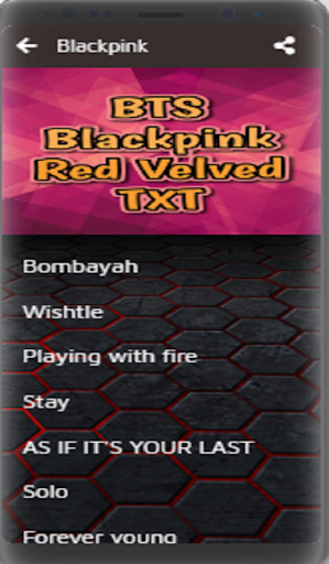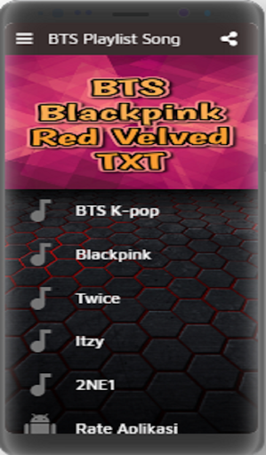 BTS Playlist Song merupakan group band dari kore yang terkenal didunia di aplikasi ini terdapat juga artis kpop yang lainnya seperti blackpink 2ne1 twice dan masih banyak lainya