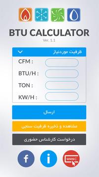 محاسبه ظرفیت مورد نیاز به : BTU/H , KW/H , TON ,CFM
