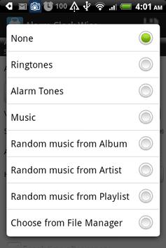 * Choose Built-in Alarm tones, Music from your external memory, your favorite album, artist or playlist.