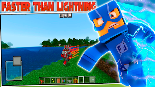New Minecraft Flash mod Master the art of lightning combat by unleashing lightning strikes and devastating super speed combos that will leave your enemies in awe. Take on a slew of iconic villains from the Marvel universe and the DC Flash, including the cunning Captain Cold, the electrically charged Livewire, and the enigmatic Reverse-Flash as they attempt to unravel the thread of time and wreak havoc in Central City. Uncover the secrets of the Speed Force in the new Minecraft superheroes mod, cosmic energy that feeds your forces. Invite your friends to the new Minecraft server where you can compete with your friends or challenge them in epic speed competitions. Compete in lightning-fast time trials, test your reflexes in obstacle courses, or engage in thrilling superhero duels as you strive to prove yourself the fastest in the Minecraft Bedrock universe. Complete exciting challenges that will test your strength and intelligence, problem-solving skills and resourcefulness while deepening your understanding of the Flash's incredible powers. Install new superhero skins on your phone. Free block games for Android. Flash is a strong and dangerous superhero, assemble a team of superhero universes: Spider man Mod, Captain America Mod, Iron Man Mod, Batman Mod, Thor Mod. The best free Anime skins for phones. Are you ready to take on the mantle of the Scarlet Speedster and race at the speed of light? Then install the popular sandbox game for boys and girls on Android in the Play Market.