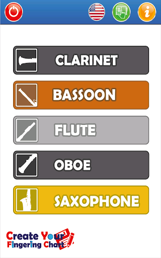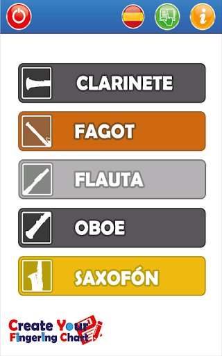 'Create your Fingering Chart' is available for wood wind instruments as flute, clarinet, basson, oboe and saxophone.