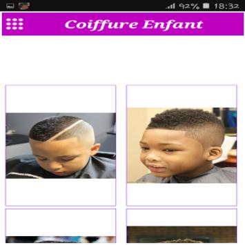 Une sélection de modèle de coiffure pour enfant que vous offre l'application, disponible sans connexion.