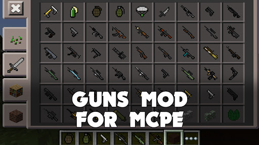 Weapon mod for Minecraft PE will add a new list of weapons. Here you can find a lot of guns from knives to automatic weapons. Our mod is well suited for playing online, so download themed maps, call your friends and start playing!