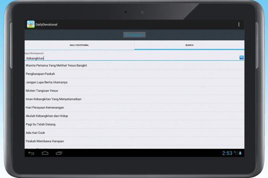 Daily Devotional app is the official app of Jawaban.com, official website of the CBN Indonesia and is being constantly developed. Some of the features you can enjoy in this Daily Devotional is: