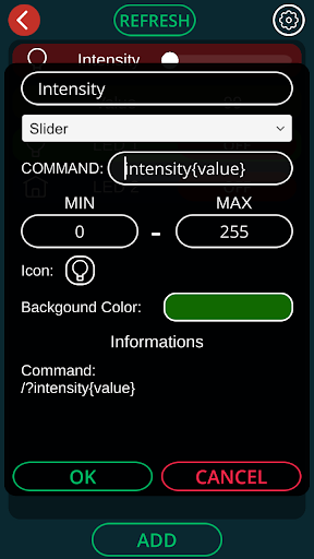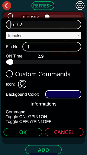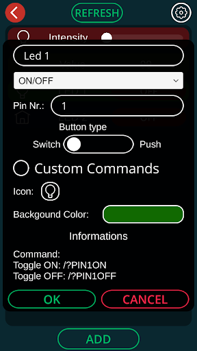 Control your arduino via WiFi/LAN. Easy to use. - Read data - Command button - ON/OFF button - Impulse button - Slider(PWM)