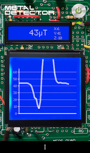 When a ferrimagnetic metal object obscures the natural magnetic field and the result is shown realtime on the graph.