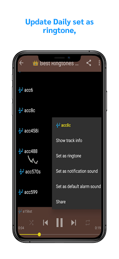 👍 Set as ringtone, notification or default alarm sound (tap and hold the track you like)