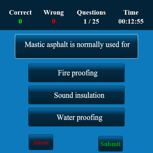 This Civil engineering app has been developed for testing your skills of Civil engineering. This app has more than 10,000 multiple choice questions and answers. This Civil engineering quiz app suits for all lower, intermediate and higher levels. The questions at all levels will be displayed randomly. The user can improve Civil engineering knowledge and user can score well in college and competitive level examinations. This is a free version and you can be used in both offline and online.