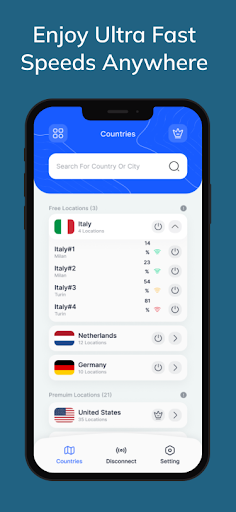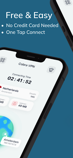 The Cobra VPN Pro provides fast and almost free servers for android gaming and streaming based on TCP and UDP protocols.